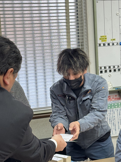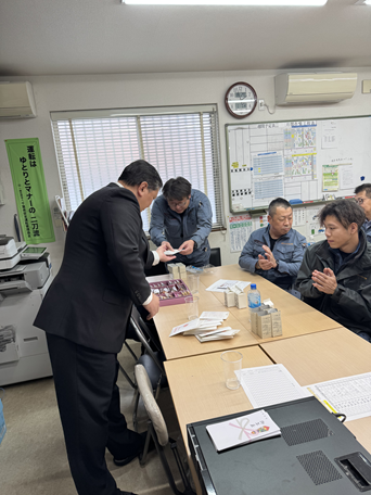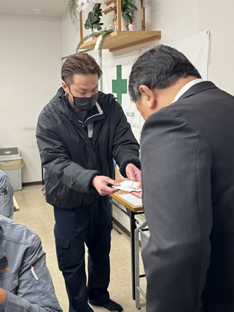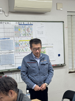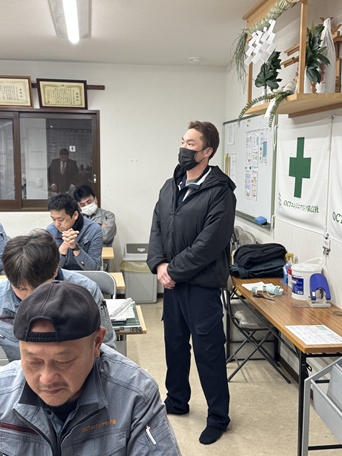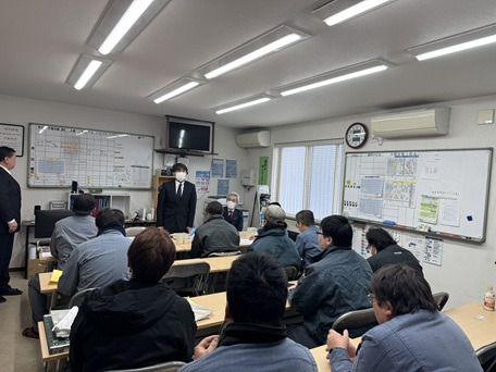 本年も引き続き、現場での「整理整頓」と「安全確保」を最優先にしてお互いを尊重しながら作業の方をお願いします。また、寒い日が続きますので、体調管理もしっかり行い、万全の状態で業務に当たってください。